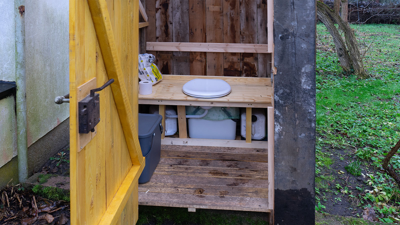 Im Winter haben wir aus verschiedenem Altmaterial und einigen neuen Teilen eine Trenntoilette gebaut. Zwar haben wir im Außenbereich ein mit Brauchwasser betriebenes WC, aber die Nutzung dieser Abfälle ist doch im Kleingarten etwas schwierig und irgendwann muss die Sammelgrube kostenpflichtig abgepumpt werden. Die Trenntoilette liefert Urin, der als Stickstoffdünger zum Einsatz kommen kann und Stuhl vermischt mit Holzkohle und Spänen, welcher leicht zu kompostieren ist. EM helfen die Geruchsbelästigung weiter zu senken und unser Brauchwasser wird nicht mehr durch die Toilettenspühlung verbraucht. Damit kommen wir auch der Ideen des Permakulturgartens näher. Dort soll ja bekanntlich alles was im Garten entsteht auch dort wieder verwertet werden.